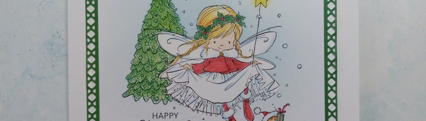 Welcome to our new theme at Alphabet Challenge, where Tee has given us M for Mythical Creatures. I need to get back to my personal challenge for 2025 of making one Christmas card each week – obviously my holiday interrupted that, but I’m guessing the production rate my step up over the next couple of months to compensate! Anyway, the point of that is to say that I opted to use one of Clarity’s Christmas Poppets (this is Presh) on my DT card – I love these little fairies. So, having decided to go for a seasonal card, I picked up the T for Trees theme at ABC Christmas, together with the general Christmas themes at Merry Little Christmas and Addicted to Stamps.