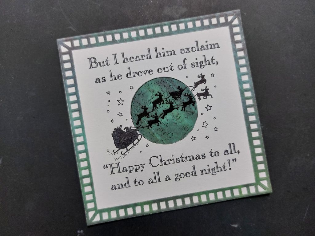 Hello everyone. Here we are at Monday again – the weeks are rolling by so fast and the Big Day is approaching… I’ve got some more new goodies to share with you today, as Clarity are launching a set of printed parchment squares today to complement their fabulous Twas the Night stamp set (hand drawn by Barbara to showcase the iconic American Christmas poem)