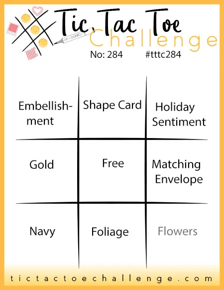 I’ve also incorporated the bottom row of navy, foliage & flowers from TicTacToe into this design (always helpful to have other prompts to work with). So how will you use my CC&S sketch for a card? Our challenge runs for the next two weeks – see you in the gallery!
