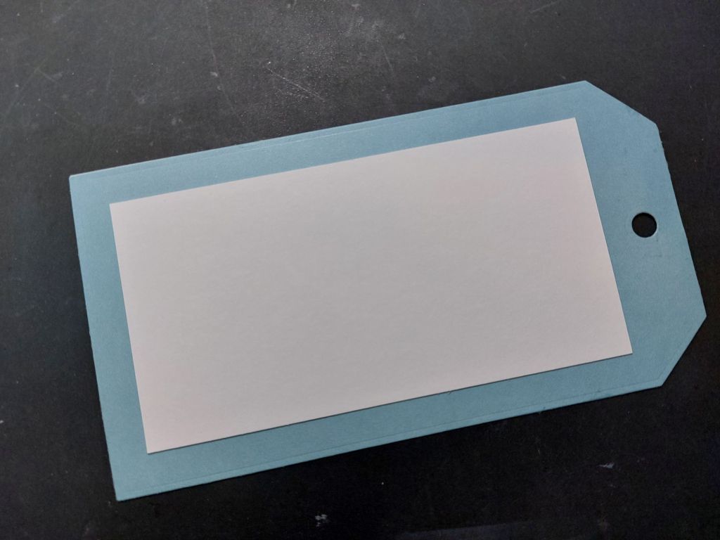The first step was to cut my tag using the largest of the Nested Luggage Tag dies – in fact I cut two, one in white card and the second from Antarctica Companion Paper, then glued them together using Pritt stick and added a white card rectangle into the front. That gave me a nice sturdy construction.