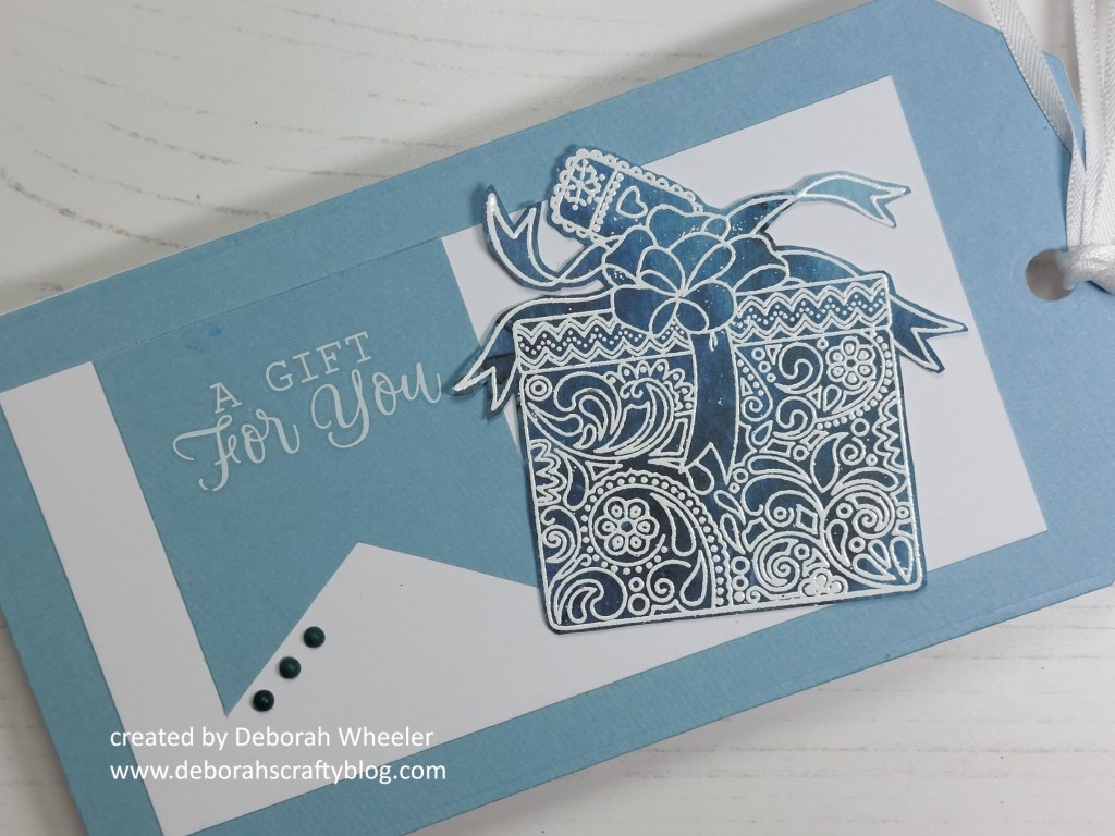 3. The stamped gift has beautiful details and is a perfect addition to your monochromatic tag! Have a wonderful holiday with your loved ones!