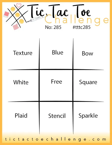 I’m really pleased with this and probably should make more tags for gifts (I already know where this one is headed!) And of course, I’ve pulled a few challenges together with this design, starting with the layout from Atlantic Hearts and the ‘gifting’ theme from The Paper Players. I then added in the colours from Color Dare and the top row of texture (from the heat embossing), blue & bow from TicTacToe.