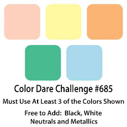 I love the shaded colours on the tree from using the designer card. I picked up the pink, green and blue tones from the palette at Color Dare and the ‘anything goes’ theme from Love Those Pretty Papers.