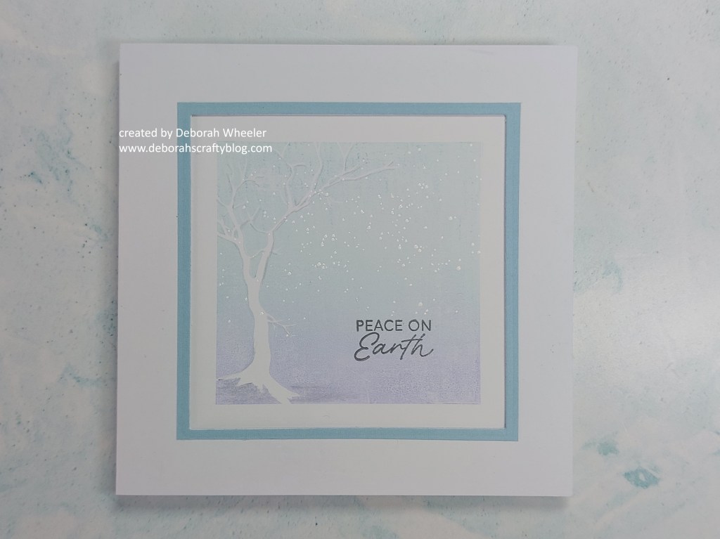 Hello friends. I’ve got another of my designs with Clarity’s new Square Tree Aperture stamps to share with you today, which were perfect for our new theme of S for Square at Alphabet Challenge. This time I’ve created a little wintery scene with the One Day At A Time set, layering it up with a square frame to maximise Alphabet’s theme.