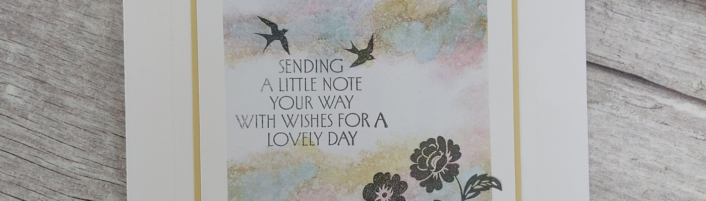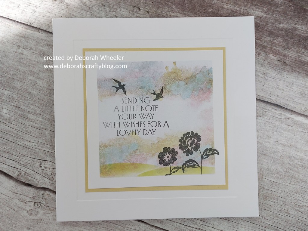 Hello everyone. It’s a lovely sunny day here today, so the perfect time to share some more new stamps from Clarity Crafts, which Barbara will also have on her HobbyMaker TV show at 2pm today. Meet the Art Deco Special Day set which has some lovely sentiments in it. I paired them up with one of the Spring/Summer backdrop print toppers for a pretty scene.
