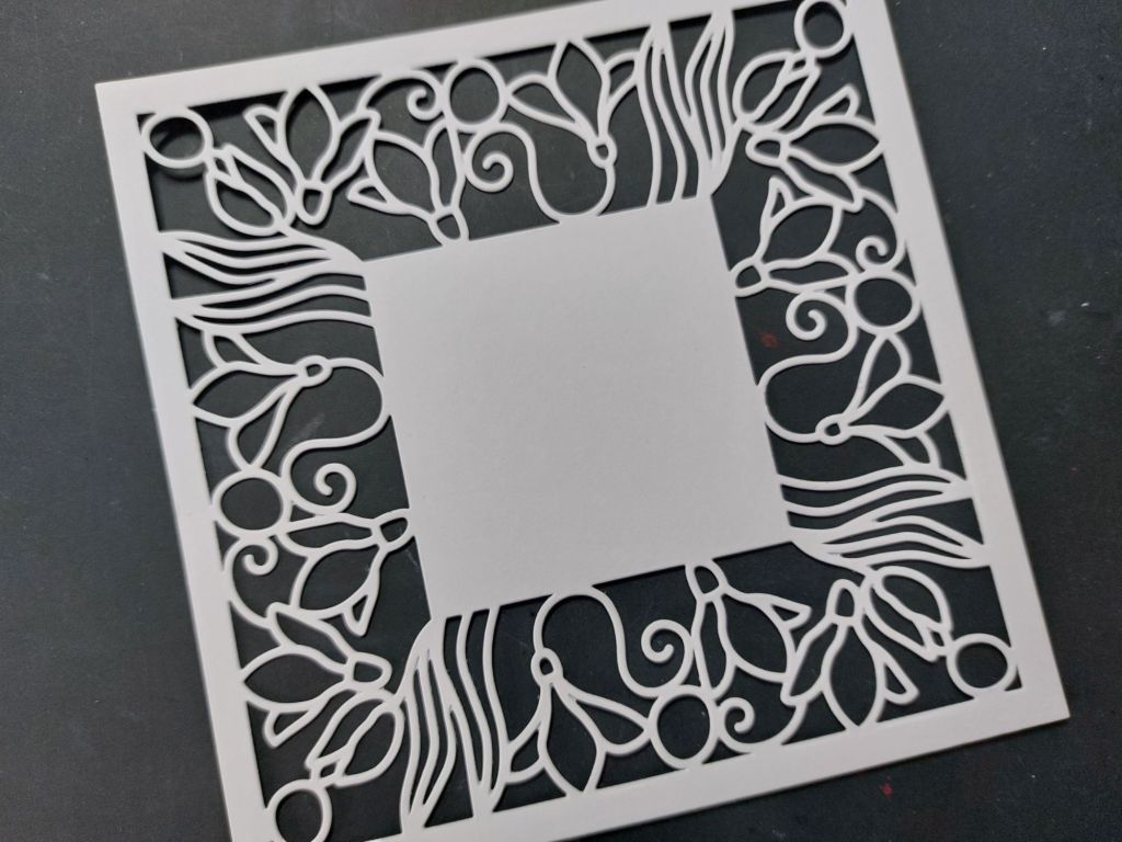 So, the first step was to cut the die into a piece of stencil card, using a nested square die to cut the outer border for my topper.