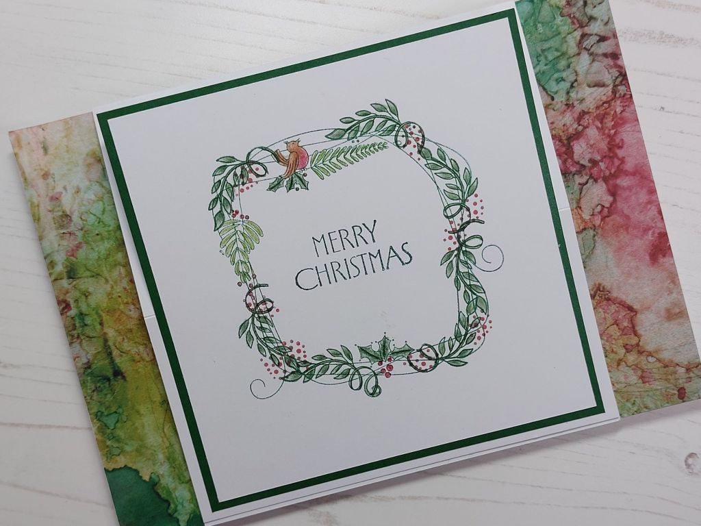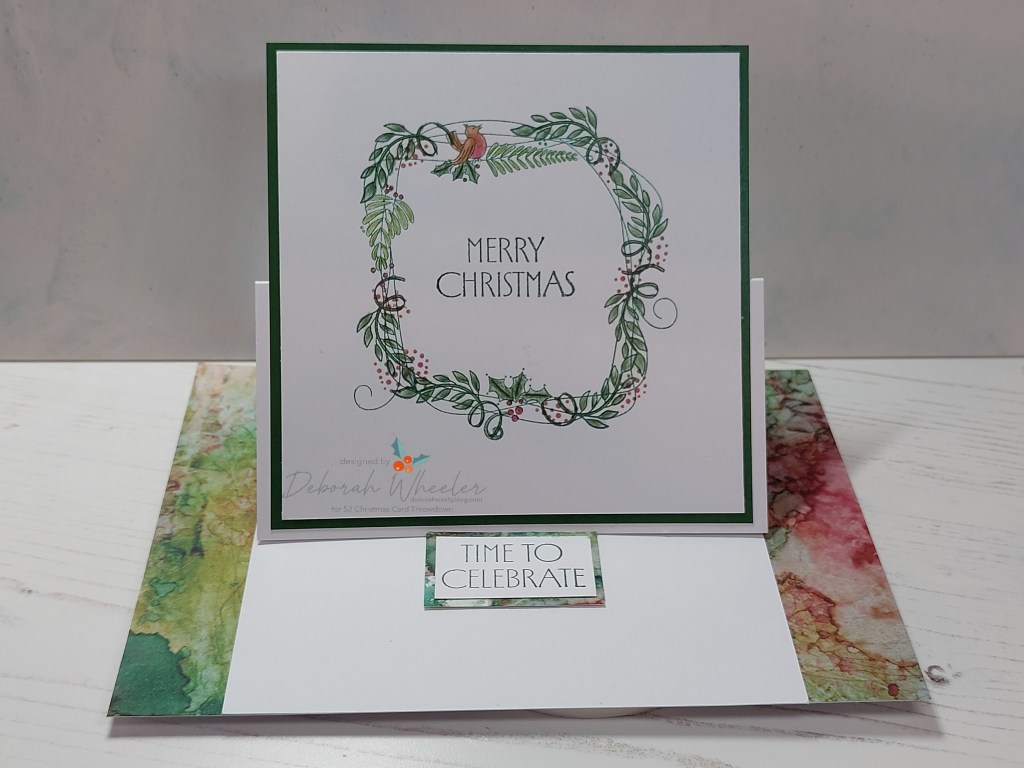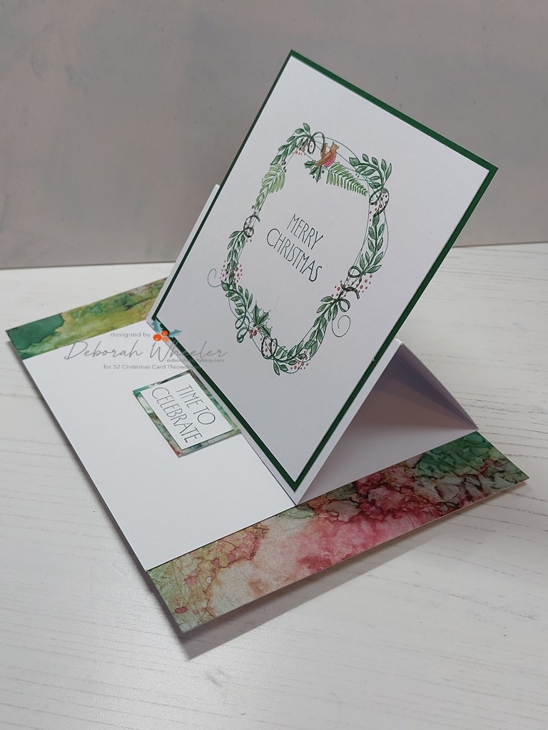 Our new challenge theme at 52 Christmas Card Throwdown is to make an easel card and I went with this simple design using the Bijou Winter Entwined Wreath stamps, which I also showed on yesterday morning’s show (watch it here)