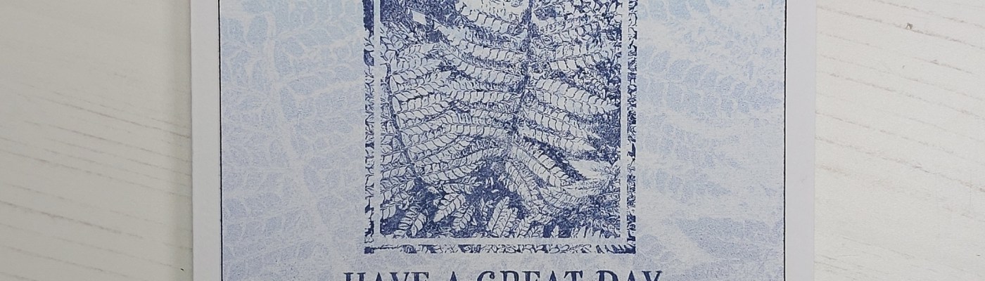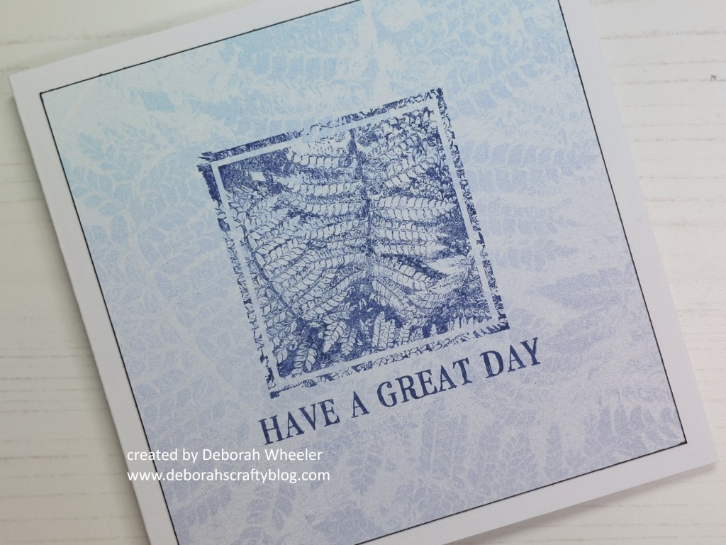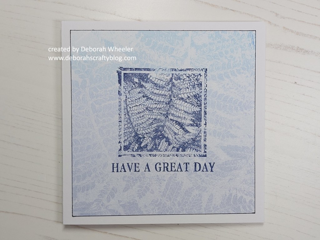 I then inked up the bijou leafy stamp with the ‘chipped sapphire’ Distress Oxide and added it into the centre of the card, together with one of the Bijou Retro Sentiments.
