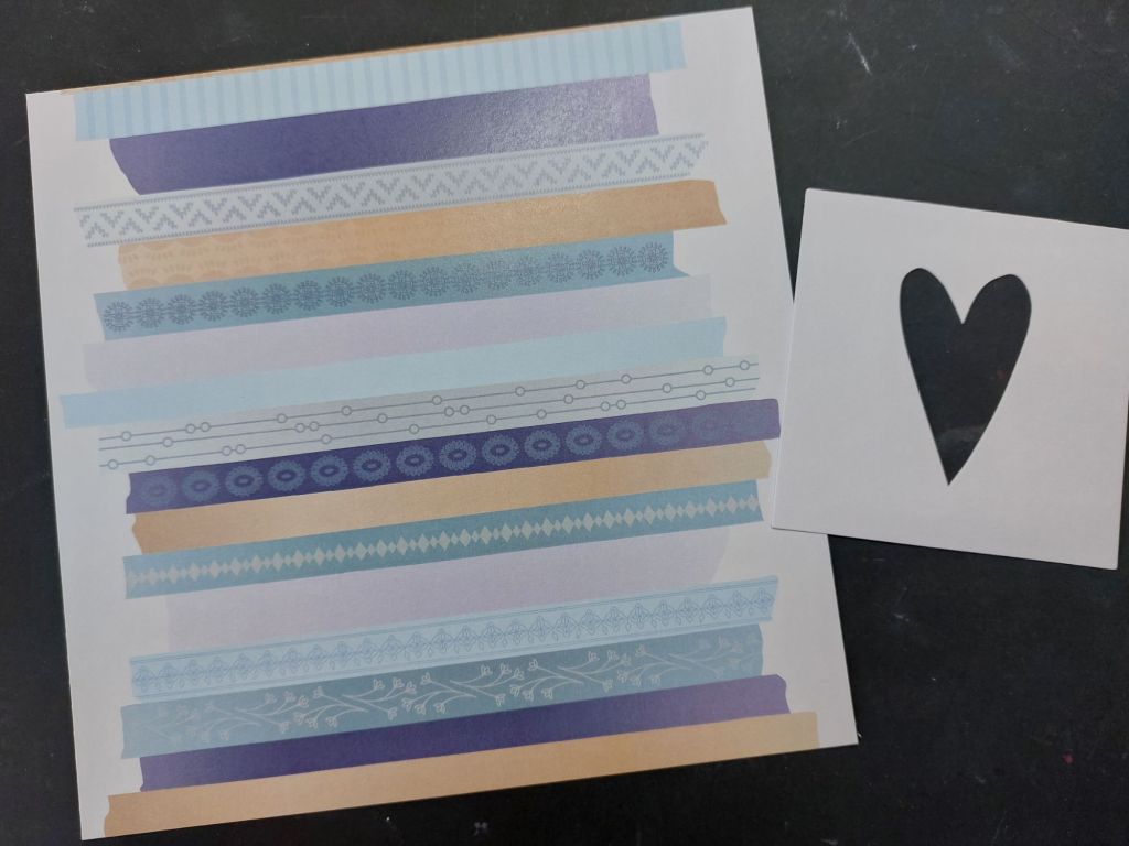 I chose one of the Fabric Strip card pieces in colours that I liked (actually I like them all!), cut it down to 6.5″ square and pulled out one of the small 3×3″ Heart Aperture Toppers.