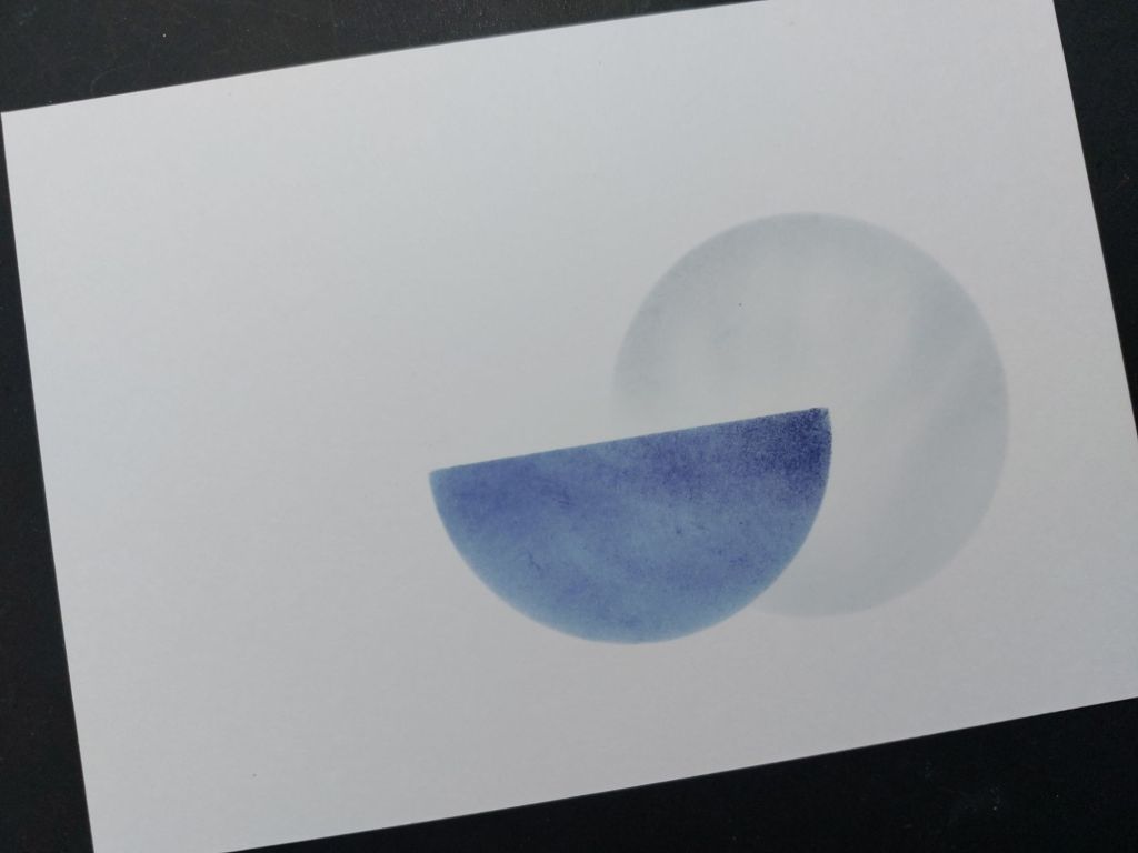 I worked on a piece of card cut to fit on an A6 blank together with the A4 Circle Aperture Mat. I lined up one of the circles, masking off the other apertures and running low tack tape across the centre of the one I wanted. I then sponged ‘chipped sapphire’ Distress Oxide into the aperture, before realigning the stencil and gently adding ‘weathered wood’ to put the circle behind the blue image.