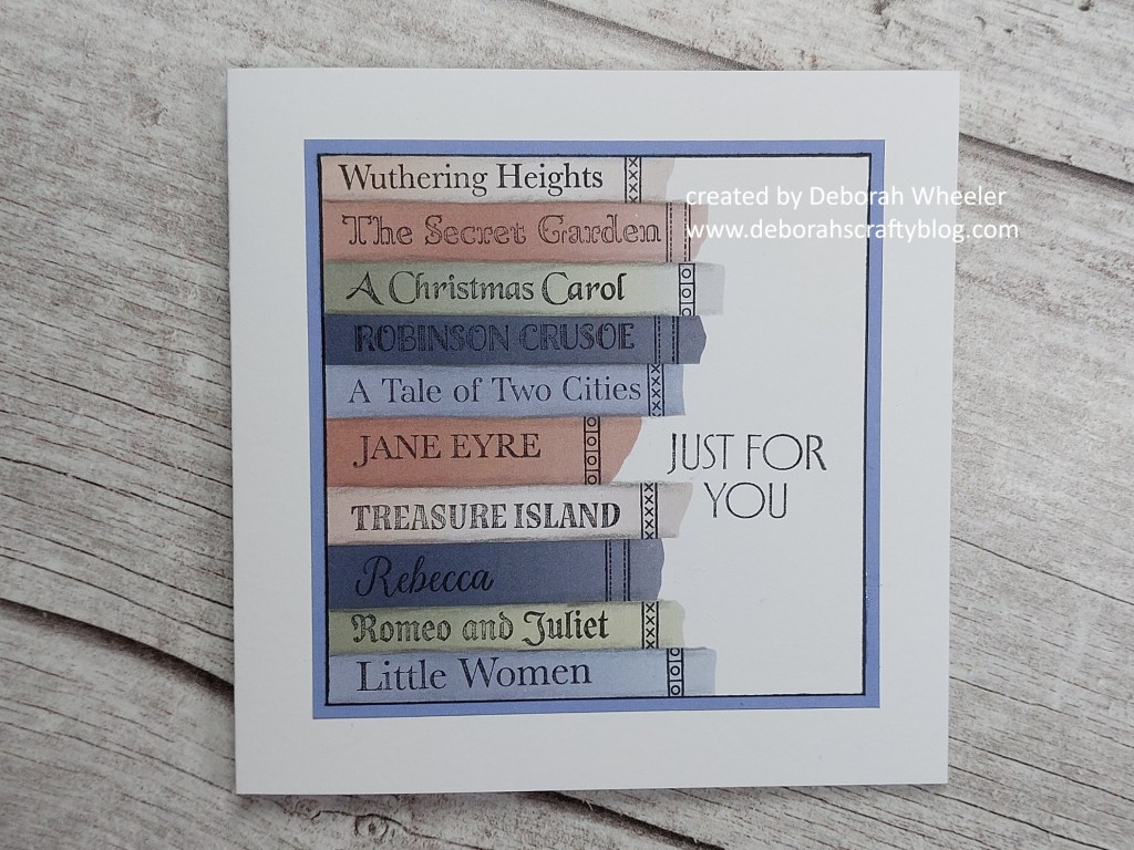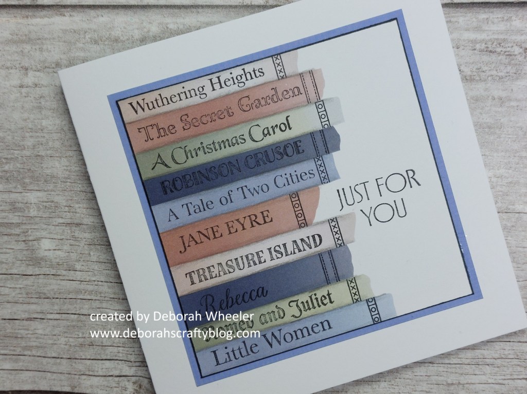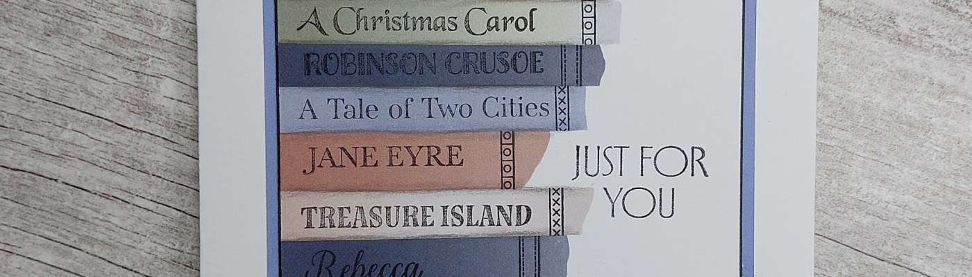 Hello crafty friends. I’ve got another new set of stamps to share today, that I picked up a couple of weeks ago. These Book Titles are a great idea – and they fit onto the stripes on the Fabric Strip card, so I made a stack of books with them! It’s been another gey and wet afternoon here today (although I was hopeful at first as we had a few hours of blue sky this morning), perfect weather to stay indoors and read your favourite book – or craft, of course!