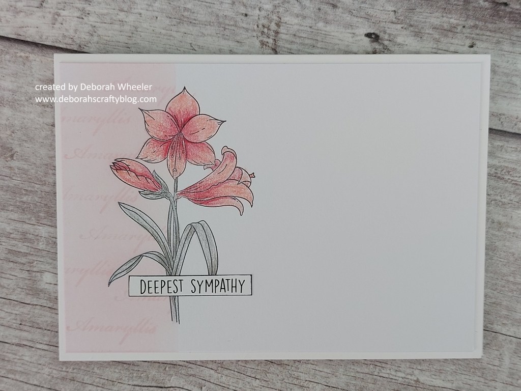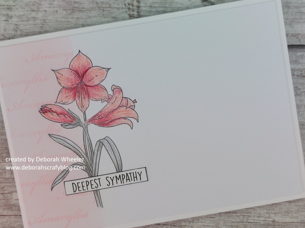 Hello crafty friends. It’s an exciting time at Clarity Crafts as their half price members’ sale started last Friday – anyone who’s a member of one or more of their monthly Craft Clubs gets access, with all Clarity’s own products at half price and lots of other items reduced too! I decided to take a look back at Linda’s Florals collection, with the Amaryllis stamp (which I have to confess has not seen ink previously!)