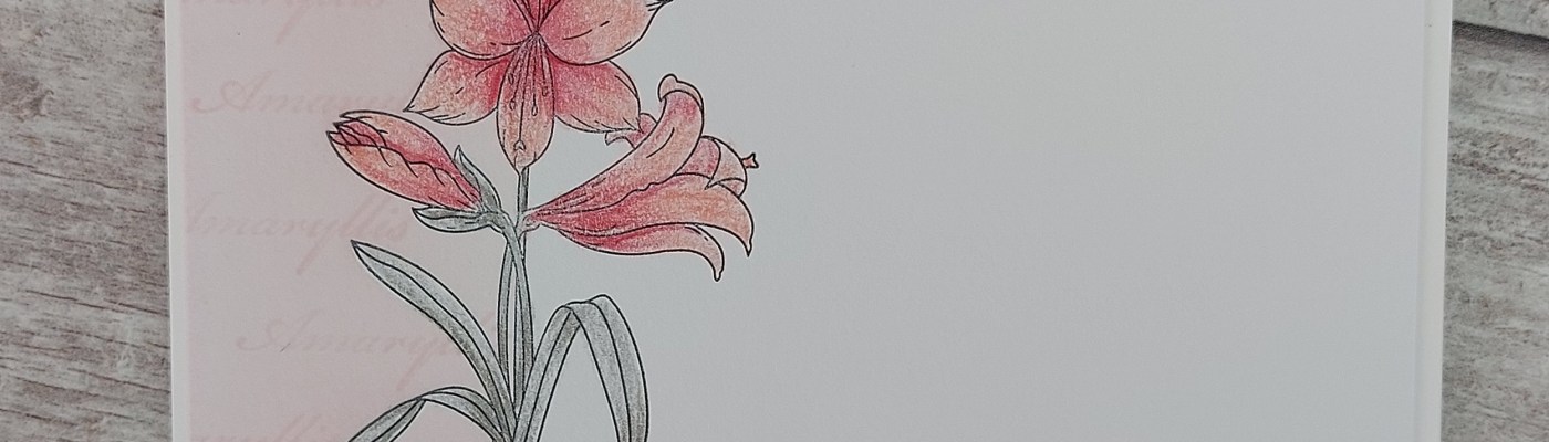 Hello crafty friends. It’s an exciting time at Clarity Crafts as their half price members’ sale started last Friday – anyone who’s a member of one or more of their monthly Craft Clubs gets access, with all Clarity’s own products at half price and lots of other items reduced too! I decided to take a look back at Linda’s Florals collection, with the Amaryllis stamp (which I have to confess has not seen ink previously!)