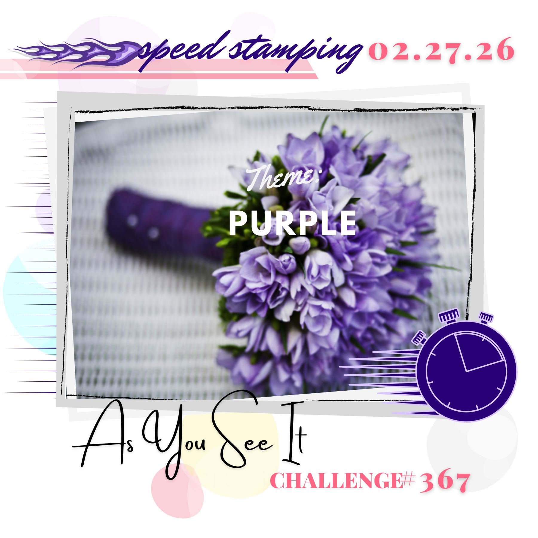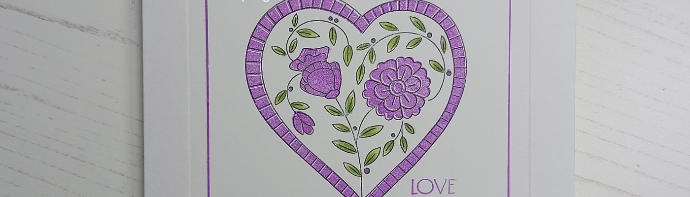 Welcome to Friday! There’s lots going on today in the craft world, with the launch of the next Product of the Month (for March) from Clarity and our new theme at As You See It challenge. I decided to combine them together into one design team card for both events! The new Floral Hearts stamps are just so pretty and work really well with the single colour in our AYSI theme – and it’s time for the speed stamping challenge! That means the cards have to take no longer than 10 minutes to make (you’ll need to time it!) and this time round Jan has asked us to make them purple.