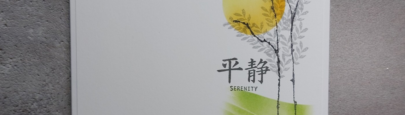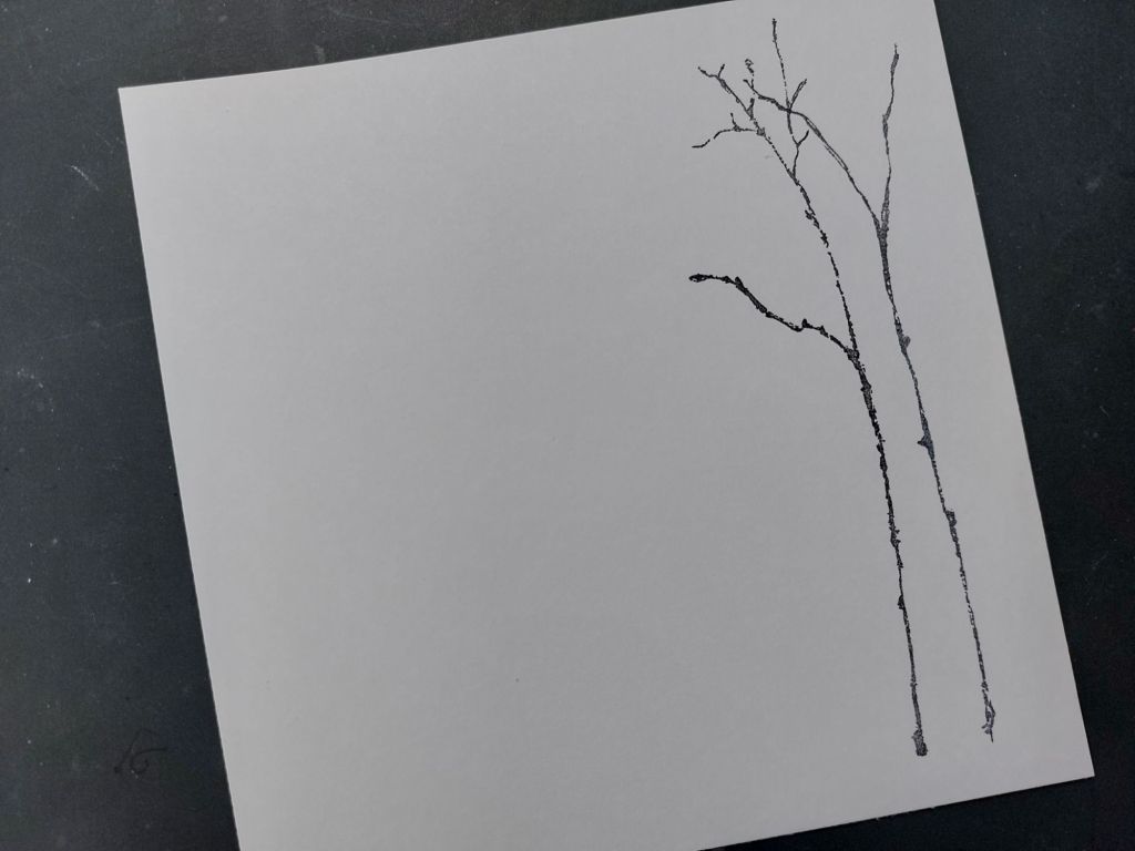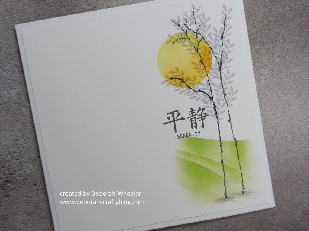 As it’s spring, I filled my trees with one of the leafy stamps in the set using ‘shadow grey’ Archival. It’s also Japan month at Clarity, so I popped one of the Bijou Japanese Symbols stamps onto it before attaching the topper to a 6×6 card blank.