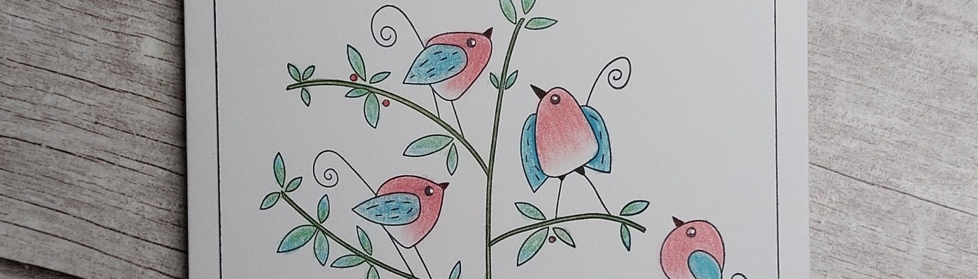 Hello there. It’s Tuesday and time for our new challenge at CAS Colours & Sketches, which I got to choose! I’ve gone for a bright and fun palette this time round, which I decided would work beautifully with the cute new Little SHAC Birds stamps – these fab little characters were originally drawn by Barbara Gray in one of her online SHAC (Safe, Happy & Creative) sessions.