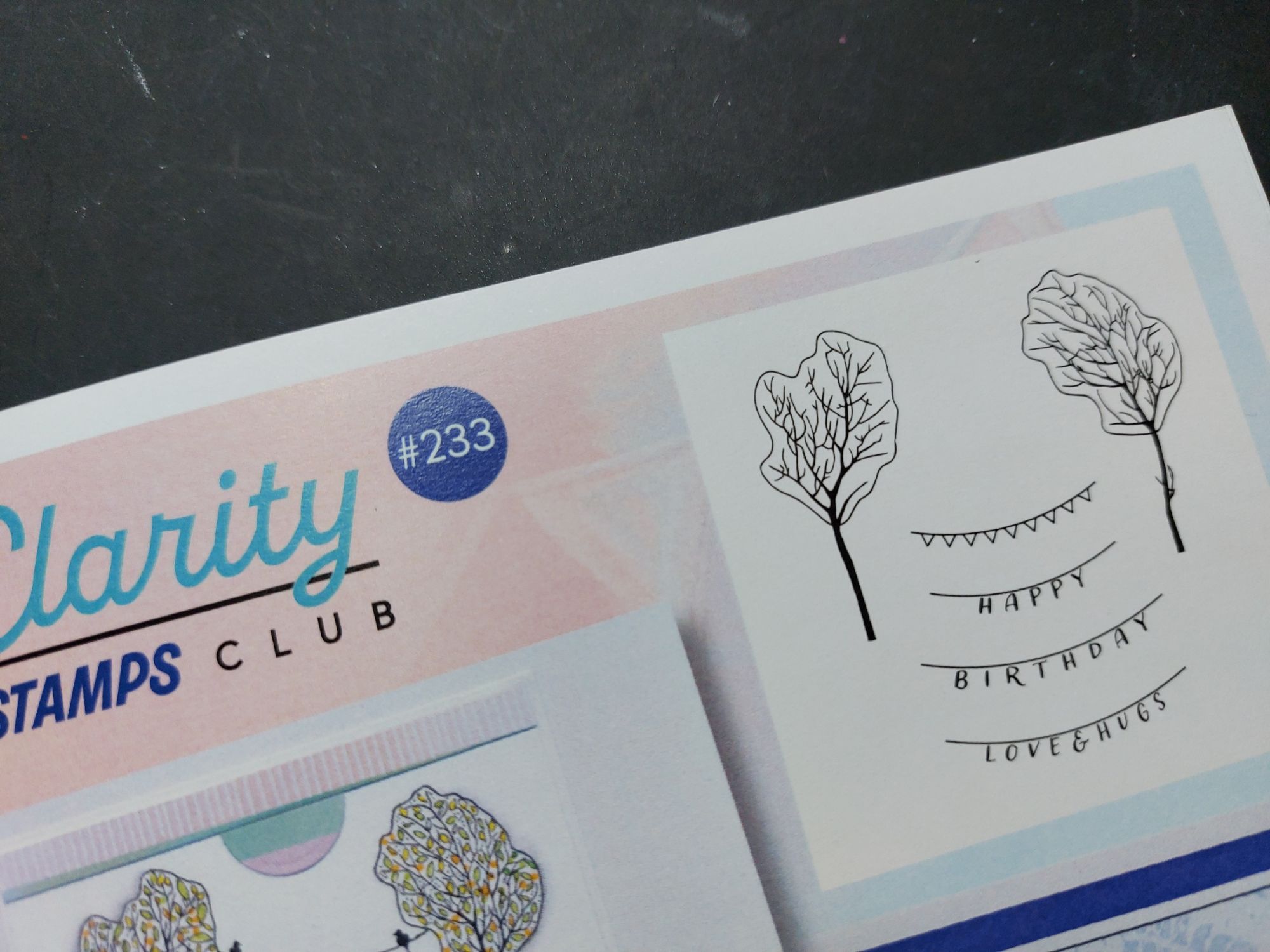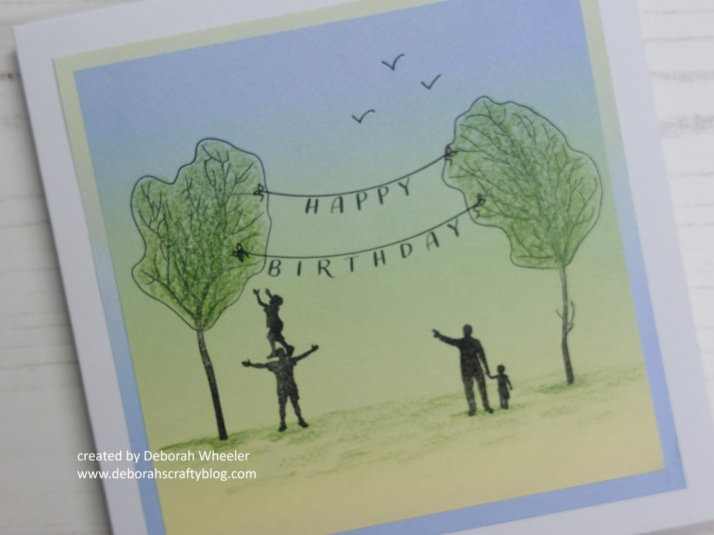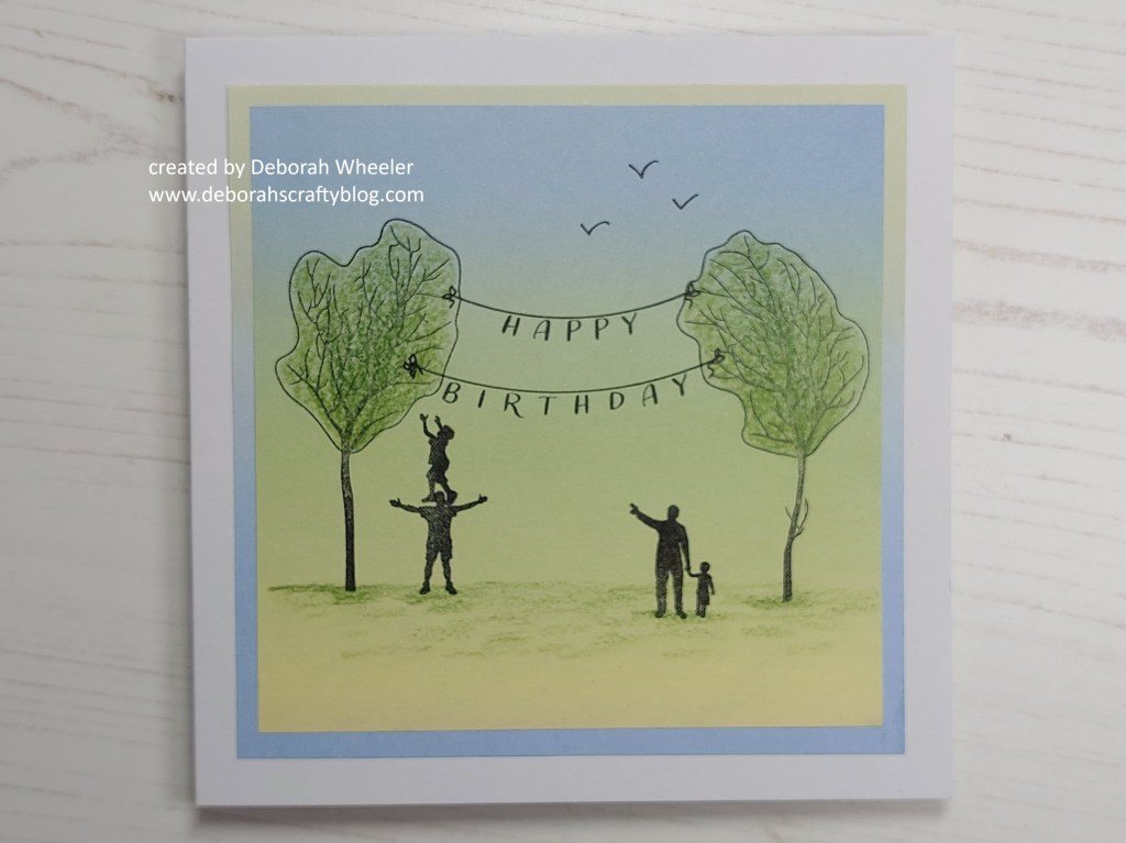 Hello crafty friends. Well, the envelope containing the April stamps from Clarity’s Craft Club dropped through my door today, so I thought I’d better get my act together and put the March stamps into action! It’s a fab little set of trees and bunting – I kept it simple with a birthday card incorporating some of the figures from the Build a Landscape – Trees & People stamps, inspired by one of the designs by my DT buddy Jane on the project sheet.