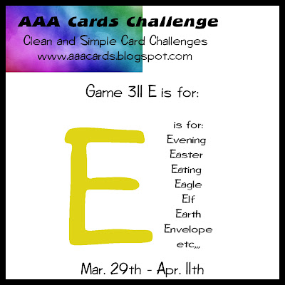 I’m going to share this card with a couple of current challenges, starting with AAA Cards – you’ll have already worked out that this meets the E for Easter theme! I’m also dropping it into Allsorts‘ gallery for their ‘springtime’ option – Easter falls during spring every year, after all.
