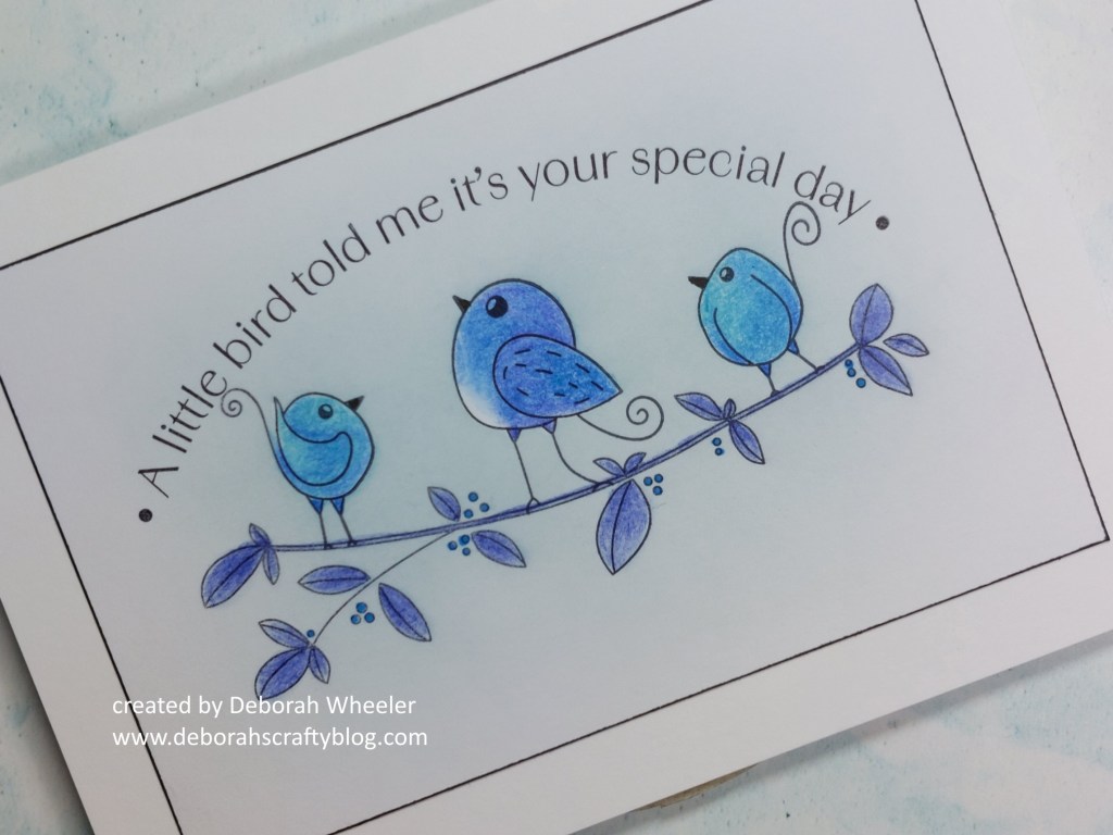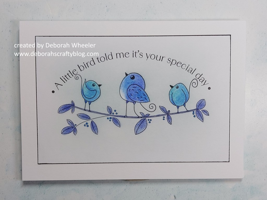 Hello crafty friends! I’m back with another double design team card, starting with our ‘make your mark’ theme at Addicted to Stamps & More, where we’re looking for you to use anything that can make a mark like alcohol markers, coloured pencils, paint, stencilling, chalk, and so on. I went with my favourite Polychromo pencils on the Little SHAC Birds stamps (this is also a DT card for Clarity, with Barbara featuring these fab stamps on today’s HobbyMaker TV shows from 1pm), teaming them up with one of the Celebration Sentiments curved stamps.