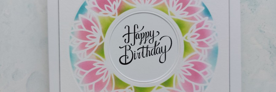 Welcome to another post sharing the new circular decorative stencils from ClarityCrafts that were launched yesterday. This time I’ve used the ‘peace’ stencil, which features a gorgeous lotus flowers design, together with one of the ‘bijou ribbon sentiments’ stamps I started by hingeing the stencil onto a piece of white card, attaching the centre circle… Read More birthday stencil