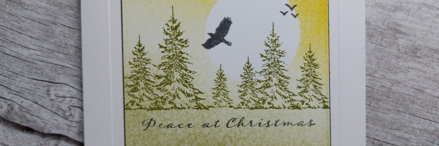 Hello everyone! I hope your week has started well – mine just keeps getting busier (I’ve got a very long ‘to do’ list…) I thought I’d take another look at ClarityCrafts‘ ‘winter cabin reflection’ stamp set, but put a twist on it with less than traditional colours thanks to Color Hues, although the layout from… Read More peaceful trees
